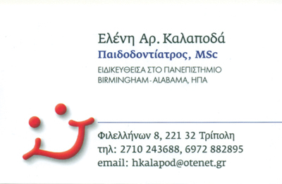 customer tabsΕπικοινωνίαΩράριο ιατρείου Τρίπολης:Δευτέρα, Τρίτη, Πέμπτη & Παρασκευή 17:00 - 21:00Ωράριο ιατρείου Μεγαλόπολης:Κάθε Τετάρτη κατόπιν ραντεβούΠαιδοδοντίατροιΥγείαΦιλελλήνων 8, ΤρίποληΑγίου Αθανασίου 38 & Νικηταρά, ΜεγαλόποληΤΡΙΠΟΛΗ ΑΡΚΑΔΙΑΣΜΕΓΑΛΟΠΟΛΗ ΑΡΚΑΔΙΑΣΑΡΚΑΔΙΑΠΕΛΟΠΟΝΝΗΣΟΣ 2710243688 6972882895hkalapod@otenet.gr Το προτείνω (έχει προταθεί 0 φορές) ΦωτογραφίεςFacebook LikeShare on FacebookTweet Widget