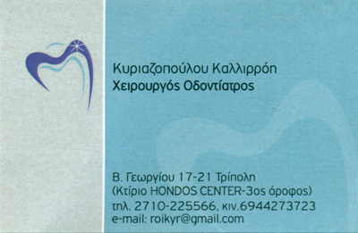 customer tabsΕπικοινωνίαΧειρουργοί ΟδοντίατροιΥγείαΒασ. Γεωργίου Α΄ 17-21, Τρίπολη, ΑρκαδίαςΤΡΙΠΟΛΗ ΑΡΚΑΔΙΑΣΑΡΚΑΔΙΑΠΕΛΟΠΟΝΝΗΣΟΣ 2710225566 6944273723roikyr@gmail.com Το προτείνω (έχει προταθεί 0 φορές) ΦωτογραφίεςFacebook LikeShare on FacebookTweet Widget