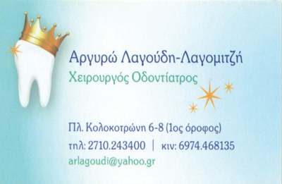 customer tabsΕπικοινωνίαΟδοντίατροιΥγείαΠλατεία Κολοκοτρώνη 6 - 8, ΤρίποληΤΡΙΠΟΛΗ ΑΡΚΑΔΙΑΣΑΡΚΑΔΙΑΠΕΛΟΠΟΝΝΗΣΟΣ 2710243400 6974468135arlagoudi@yahoo.gr Το προτείνω (έχει προταθεί 0 φορές) ΦωτογραφίεςFacebook LikeShare on FacebookTweet Widget