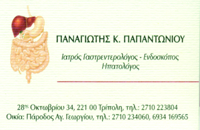 customer tabsΕπικοινωνίαΔέχεται καθημερινά Πρωί & Απόγευμα με ραντεβούΓαστρεντερολόγοιΥγεία28ης Οκτωμβρίου 34, Τρίπολη, ΑρκαδίαςΤΡΙΠΟΛΗ ΑΡΚΑΔΙΑΣΑΡΚΑΔΙΑΠΕΛΟΠΟΝΝΗΣΟΣ 2710223804 6934169565 panpapantwniou@gmail.com Το προτείνω (έχει προταθεί 0 φορές) ΦωτογραφίεςFacebook LikeShare on FacebookTweet Widget